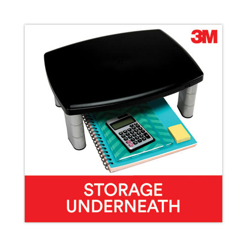 Contemporary design with stacking columns raises monitor from 1" to 5.88" in increments of 1.63" to an ergonomically correct level. Features 11" of storage space underneath to maximize desk space. Great for laptops, printers or monitors up to 80 lbs.
