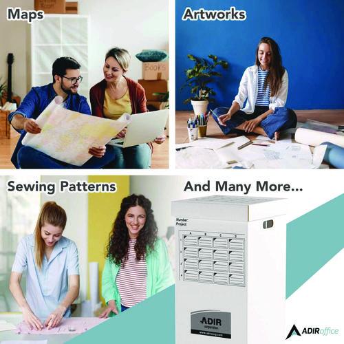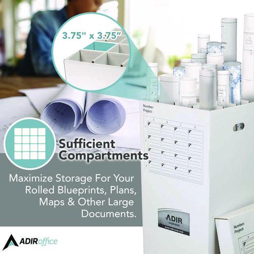Manage your rolled documents easily and efficiently with the Adir Corrugated Cardboard Upright Storage Cabinet. Made to hold 16 rolled documents at once, this simple storage cabinet will keep your large files stored and organized. This sturdy, storag- Made of white, corrugated cardboard, this unit and top are sturdy and strong to keep your important files stored and protected.