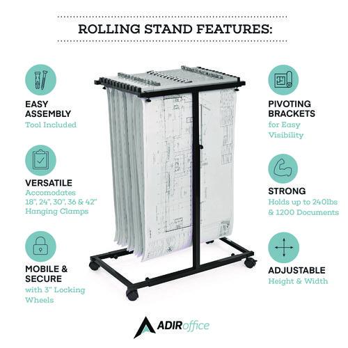 Get organized in the office with the AdirOffice Mobile Vertical Plan Center for Blueprints. For quick access, hanging blueprint storage, just clamp your files into hanging paper clamps and drop them into the top bracket. Designed for blueprints, maps- File cart accepts various sizes hanging clamps.