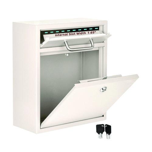 AdirOffice Locking Drop Box Wall Mounted Mailbox is designed to hold keys, cash, envelopes or other important materials that need to be dropped off after hours. Constructed of durable, heavy duty 16-gauge galvanized steel to provide long-lasting stre- This wall-mounted drop box mailbox provides the perfect solution for convenient and secure, drop box applications, including night drops, key drops, payment drops, interoffice mail and much more.