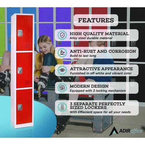 The minimalist design of our lockers makes them suitable for a wide range of spaces. Each is accompanied by coat and bag hooks which make the organization more accessible than ever, encouraging children to be responsible and independent. Additionally- Lockers are constructed with steel framing and sides, with rubber feet on the bottom for durability.