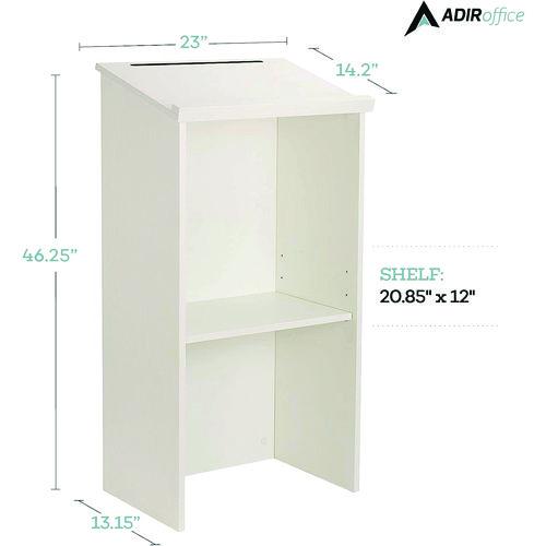 Image of AdirOffice Wood Stand-up Podium Lectern Speaker Stand, 23 x 15 x 45.8, White