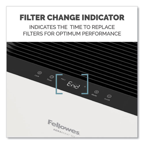 Fellowes® 9794501 AeraMax SV Air Purifier, 1,500 sq ft Room Capacity, White/Black