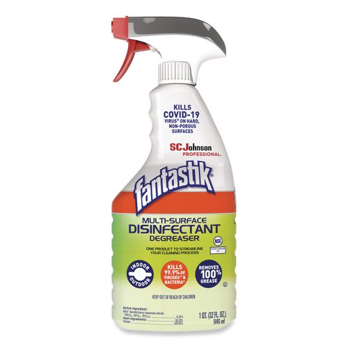 SC Johnson Professional Fantastik Multi-Surface Disinfectant Degreaser kills 99.9% of bacteria, and cuts through tough grease and grime on most surfaces. Clean, disinfect, degrease and deodorize your kitchen and restroom hard, non-porous surfaces. Ap