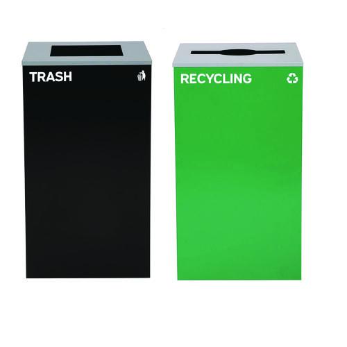 Alpine Industries 29 Gallon Trash/Recycling Cans, Steel, Green Recycling Can with Mixed Lid, Black Trash Can with Square Lid
