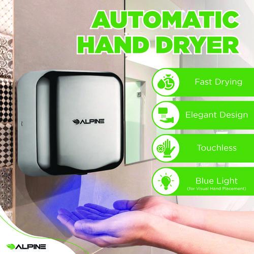 The Hemlock hand dryer has a plug-in option for fast and easy installation. The dryer will activate automatically when hands are placed underneath it and will stop when hands are removed. It also features auto-stop function if hands are not removed a- This automatic hand dryer is crafted with stainless steel for extended durability and it is both corrosion-proof and lightweight.