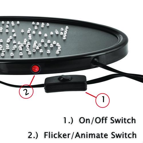 • Simply hang the chain up and plug it in, then power it on using the switch on the cord and select your desired mode with the switch on the sign.