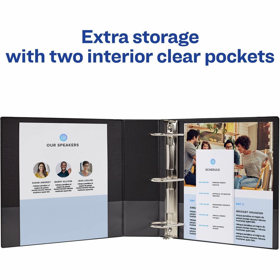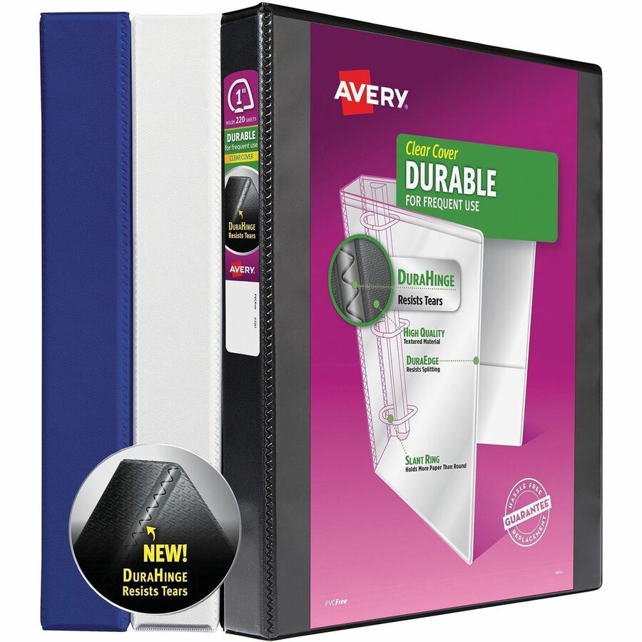 Keep lecture notes, procedures and homework assignments organized with this Durable View Binder. The sturdy construction is ideal for frequent referencing. DuraHinge design is stronger, lasts longer and resists tearing. The DuraEdge feature makes the sides and top more pliable to resist splitting. Deep-texture film offers a smoother finish and features a linen pattern for high-quality look and feel. Interior pockets help you organize and secure loose papers. Wide front and back binder panels fully cover standard dividers and sheet protectors. Customize your cover with free online templates and designs.