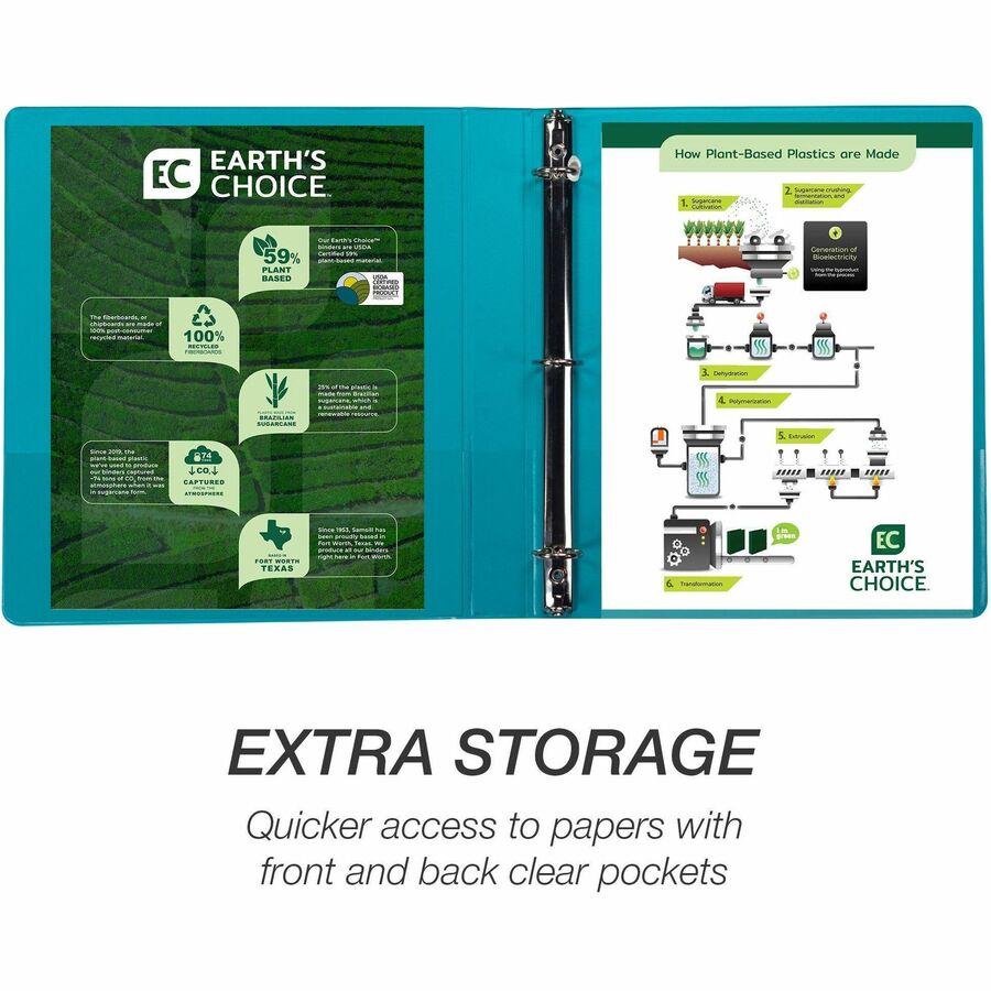 EarthChoice Durable View Binders are not only well-constructed for holding paper, but also offer both biobased and recycled properties that make them a great sustainability solution for the environment. These USDA certified binders are made with at least 59 percent biobased material and come with a cover made with up to 25 percent plant-based, renewable plastic. Durable chipboard is made of recycled, post-consumer content. Biobased content is carefully tested using ASTM D-6866 standards. These biobased presentation binders can comfortably hold 8-1/2" x 11" sheets of three-hole punched paper. Two clear, horizontal pockets inside the three-ring binder provide additional storage and organization of loose documents. Clear overlay on the front, back and spine of the binder gives full control and flexibility over customization of presentations, organizational projects, office reports, class projects and more.