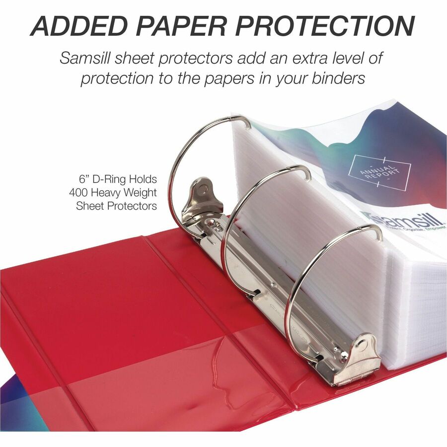 D-ring durable binder features a clear overlay on the front, back and spine to give you full control and flexibility over customization of presentations, organizational projects, office reports, class projects and more. Three-ring binder is packed and wrapped to create a custom reference system for weekly or monthly office reports, multiple classes at school or other unique personal or professional project binder. Rings are mounted on the back lid to let pages lie flat and prevent wear-and-tear of the documents. It also includes two clear, inside horizontal pockets for additional binder storage and organization of loose documents and unpunched papers.