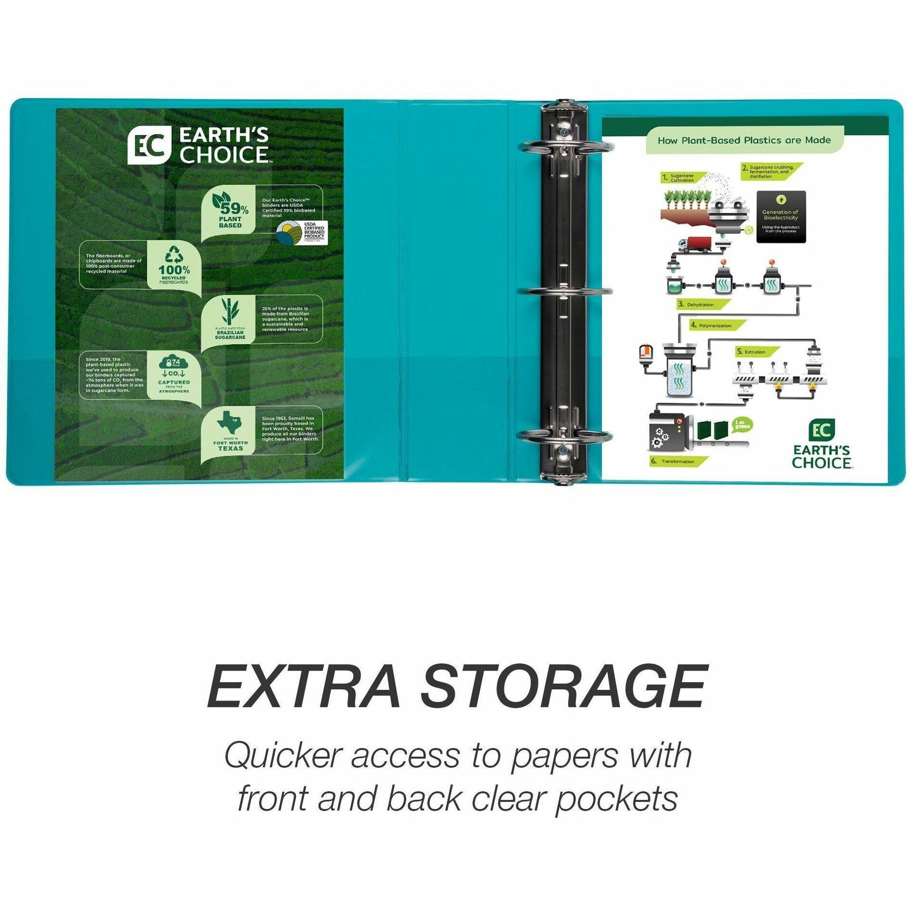 Samsill® Earth's Choice Plant-Based Economy Round Ring View Binders, 3 Rings, 3" Capacity, 11 x 8.5, Teal, 2/Pack