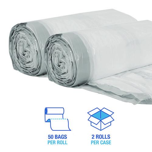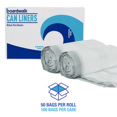 Boardwalk® Drawstring Kitchen Bags, Drawstring, 13 gal, 24" x 28", White, 50 Bags/Roll, 2 Rolls/Carton