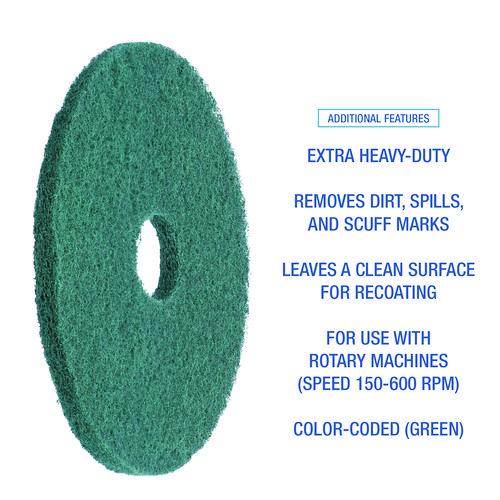 Boardwalk® Heavy-Duty Scrubbing Floor Pads, 13" Diameter, Green, 5/carton