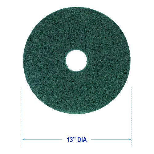 Image of Boardwalk® Heavy-Duty Scrubbing Floor Pads, 13" Diameter, Green, 5/carton