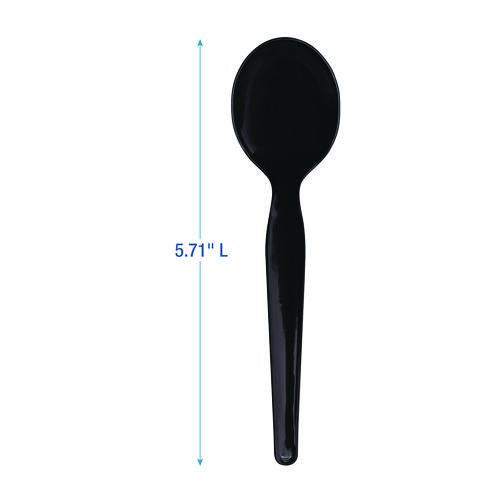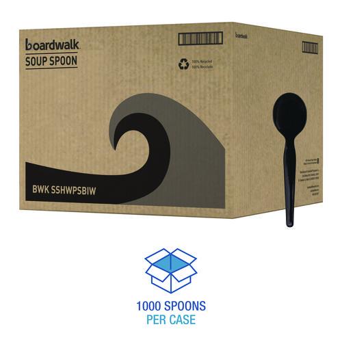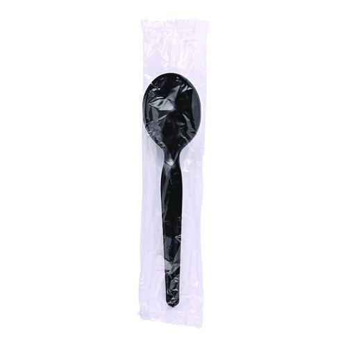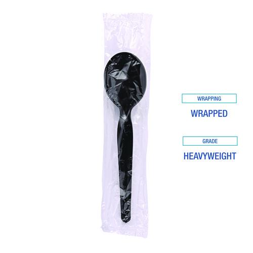 Image of Boardwalk® Heavyweight Wrapped Polystyrene Cutlery, Soup Spoon, Plastic, Black, 1,000/Carton