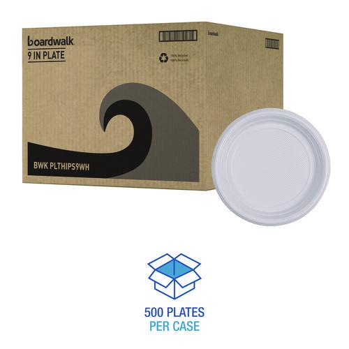 Boardwalk® Hi-Impact Plastic Dinnerware, Plate, 9" Dia, White, 500/carton