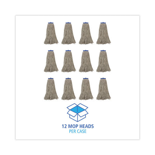 Boardwalk® Mop Head, Lie-Flat Head, Cotton Fiber, 24 oz., White, 12/Carton