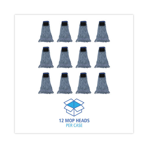 Boardwalk® Loop-End Mop with Scrub Pad is a good quality, economical, four-ply blend of cotton and synthetic fibers. The built-in scrubbing pad provides the highest level of abrasion, making it an excellent choice for foodservice areas. The blue yar
