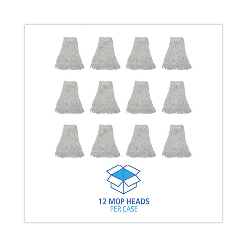 This sturdy mop head is made with premium four-ply yarn and a heavy-duty, polyester tape headband. Constructed with a looped-end design that minimizes less lint, fraying, and unraveling. Built to be durable, the double-sewn tailband prevents tangles