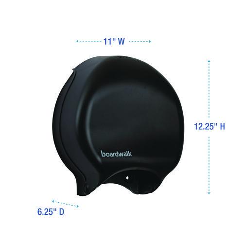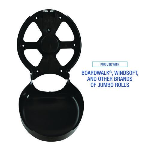 - Accepts one jumbo roll of toilet tissue such as Boardwalk