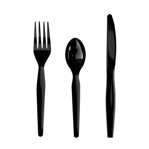 Boardwalk® Three-Piece Polystyrene Cutlery Kit, Heavyweight, Fork/Knife/Spoon, Plastic, Black, 250/Carton