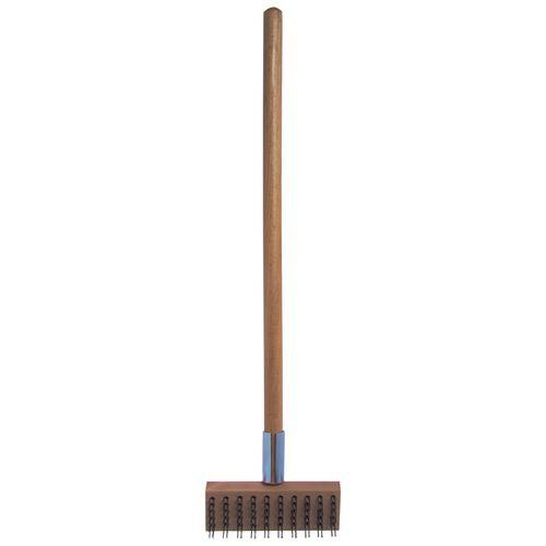 High-strength metal bristles remove carbon deposits, rust, burned-on food buildup from high-temperature ovens and grills. Stainless steel scraper loosens debris for a deeper clean. Built to last even in busy kitchens. Finished with long, sturdy wood
