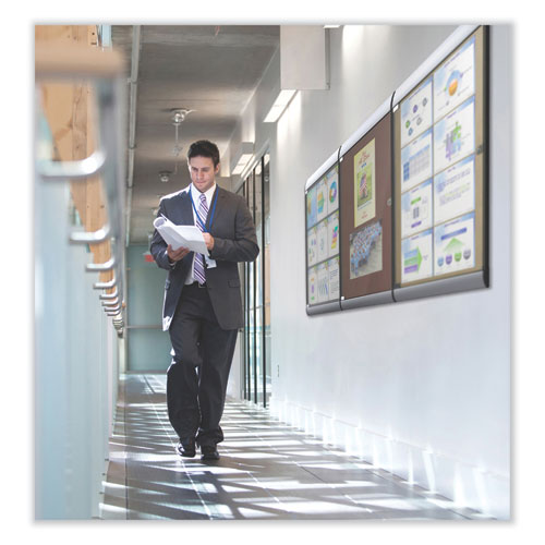 Ghent's Silhouette Enclosed Bulletin Board offers a protected surface for you to pin, tack, or staple important messages or announcements. The bulletin surface holds up to nine pieces of letter sized paper so that you can fit more information in one- Fits up to 9 letter sized pieces of paper.