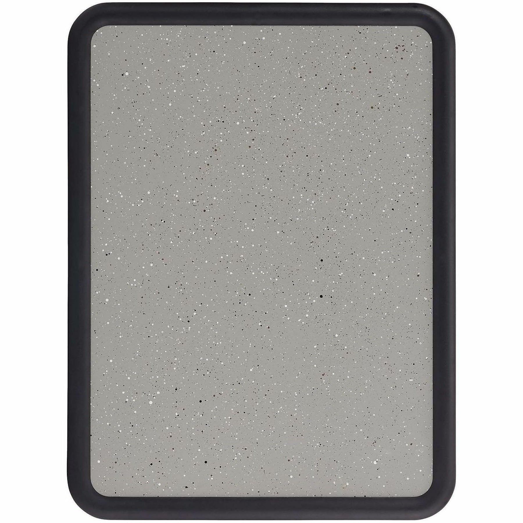 - Durable granite-colored bulletin board surface with matching plastic frame secures documents with push pins.
