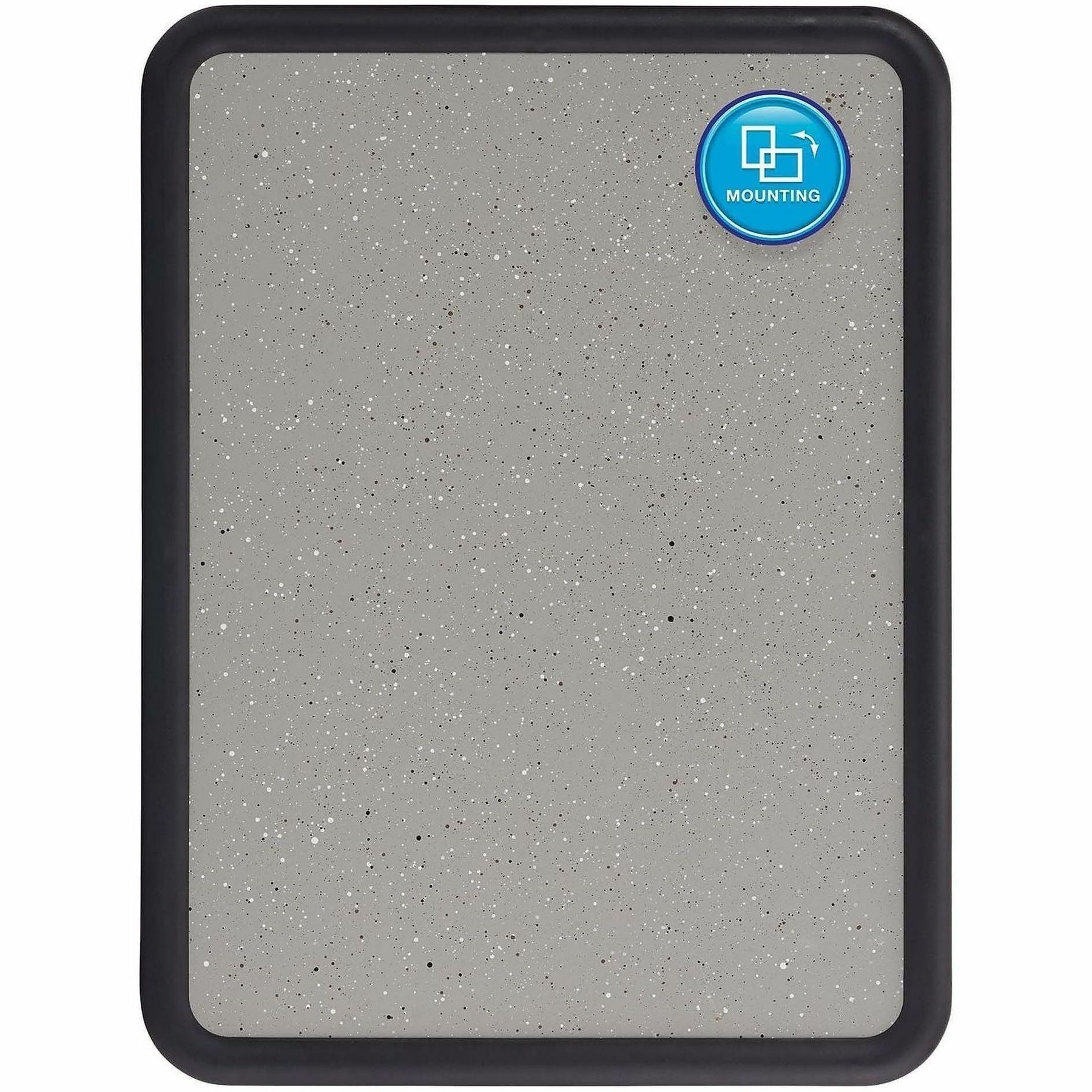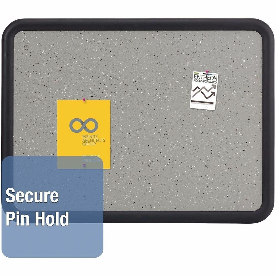 - Durable granite-colored bulletin board surface with matching plastic frame secures documents with push pins.