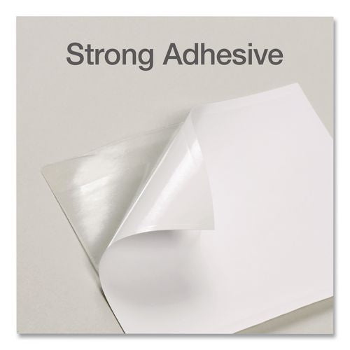 Attach this index card pocket to hold credit cards, index cards, tab cards, electronic media and more. Self-adhesive back panel extends above the front panel for easier insertion and removal. Clear front and back with white peel-away back panel. Non-