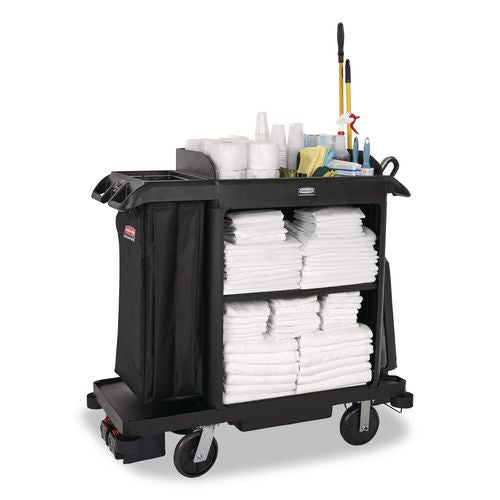 Rubbermaid® Commercial 2202585 Compact Housekeeping Cart?, Plastic, 3 Shelves 1 Bin, 23 x 53.12 x 19.1, Black