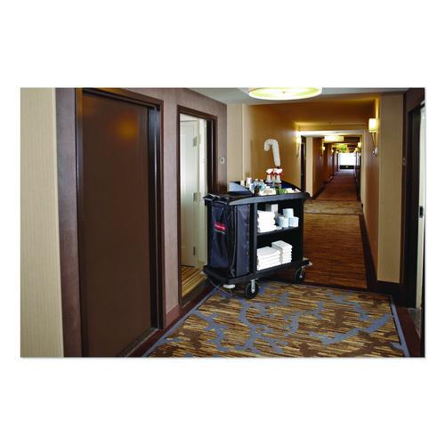 Rubbermaid® Commercial FG619000BLA Multi-Shelf Cleaning Cart, Plastic, 4 Shelves, 1 Bin, 22" x 49" x 50", Black