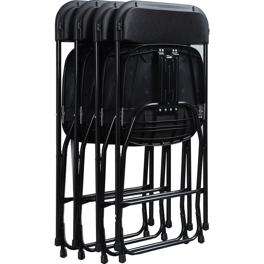 Folding chair features a contoured back to offer comfortable seating during any event. Powder-coated exterior resists normal wear-and-tear to maintain its professional appearance. Welded braces increase its stability for safe support. Folding chair is designed to hold up to 225 lb.