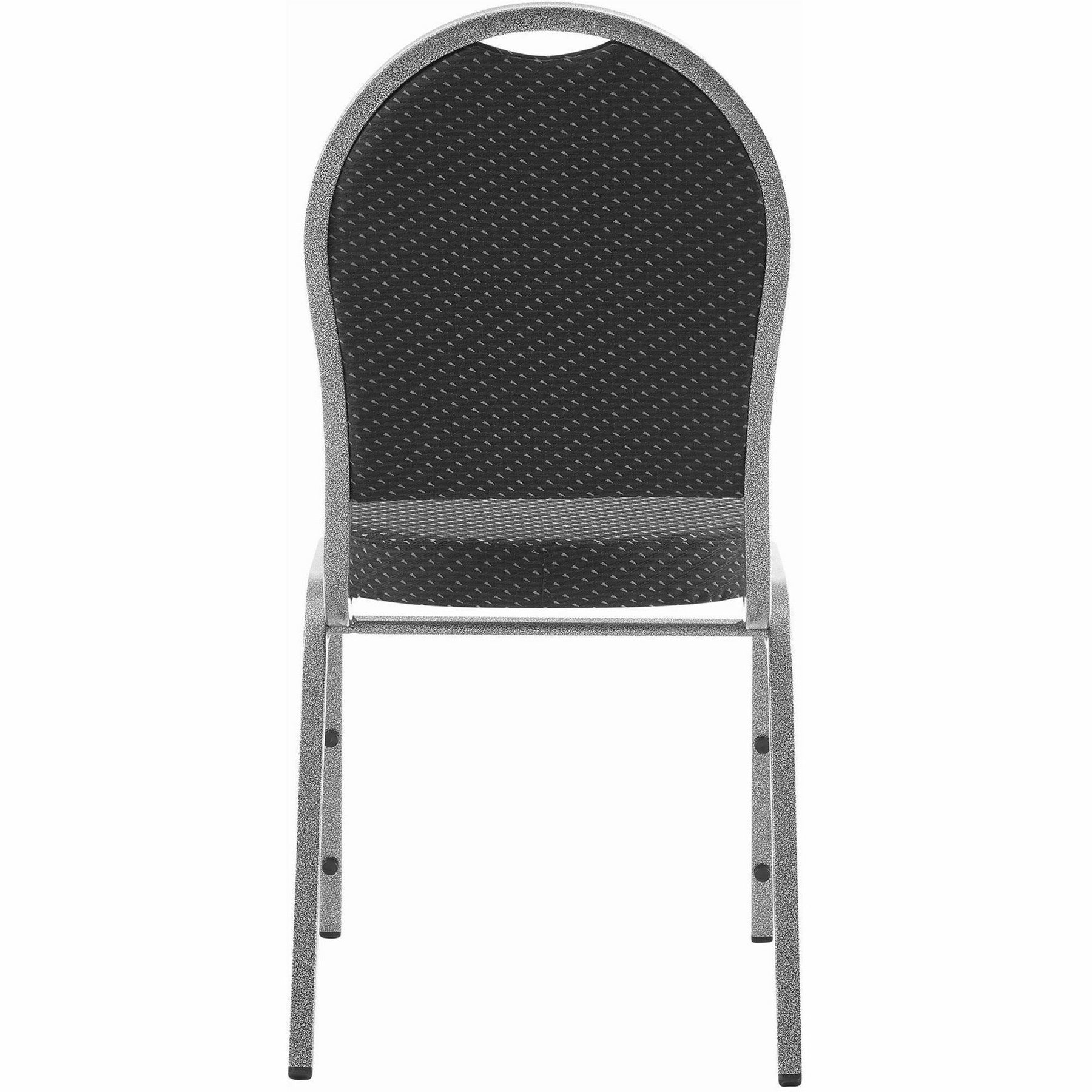 Stacking chairs offer a convenient solution to your need for sturdy general seating. The tubular steel frame with no arms features a hammered oxidized steel finish for durability. The 16-7/10" high seat and rounded back are upholstered with textured fabric and cushioned for comfort. The seat cushion is 2-1/2" thick, and the back cushion is 1-1/2" thick. Seat depth is 15-9/10". Four-leg base has nylon glides. Chairs stack up to 14 high.