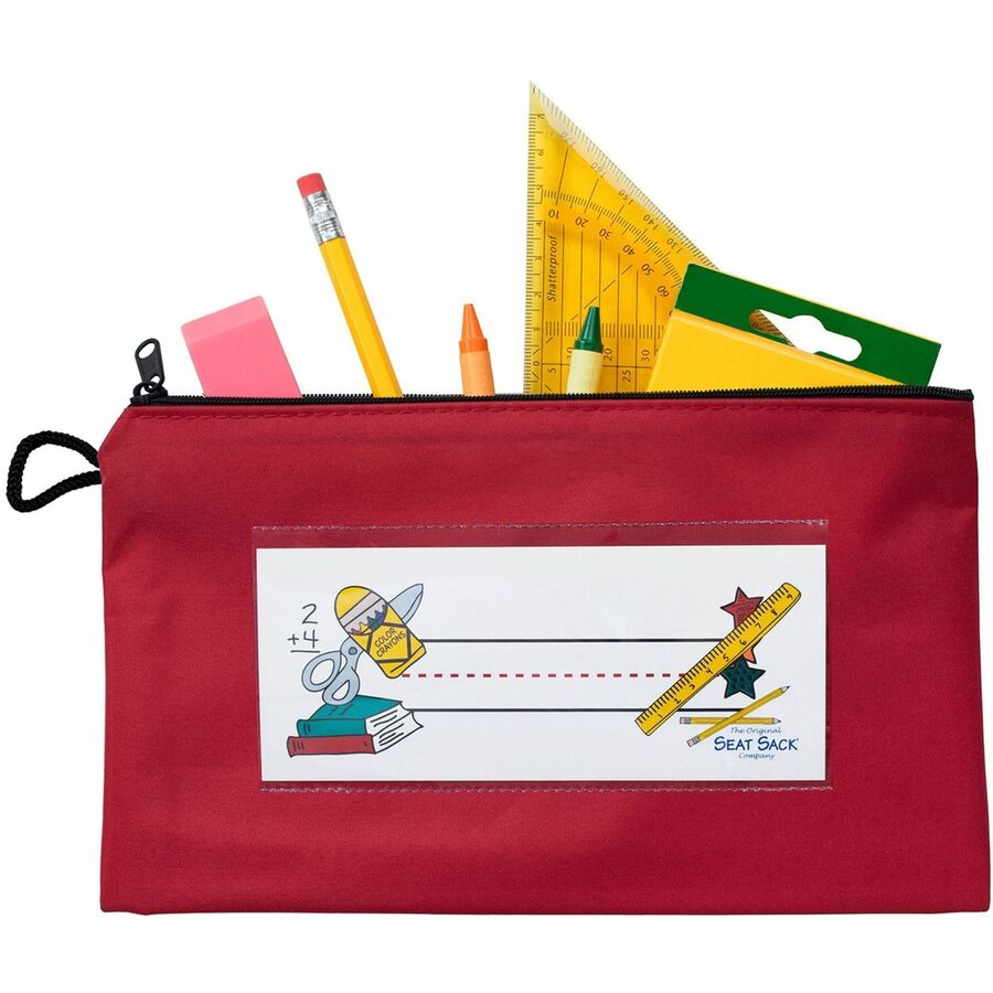 Seat Sack Pouch,f/Pencils,Zipper,9.5"x2"x5.5",Red, EA (1 Each)