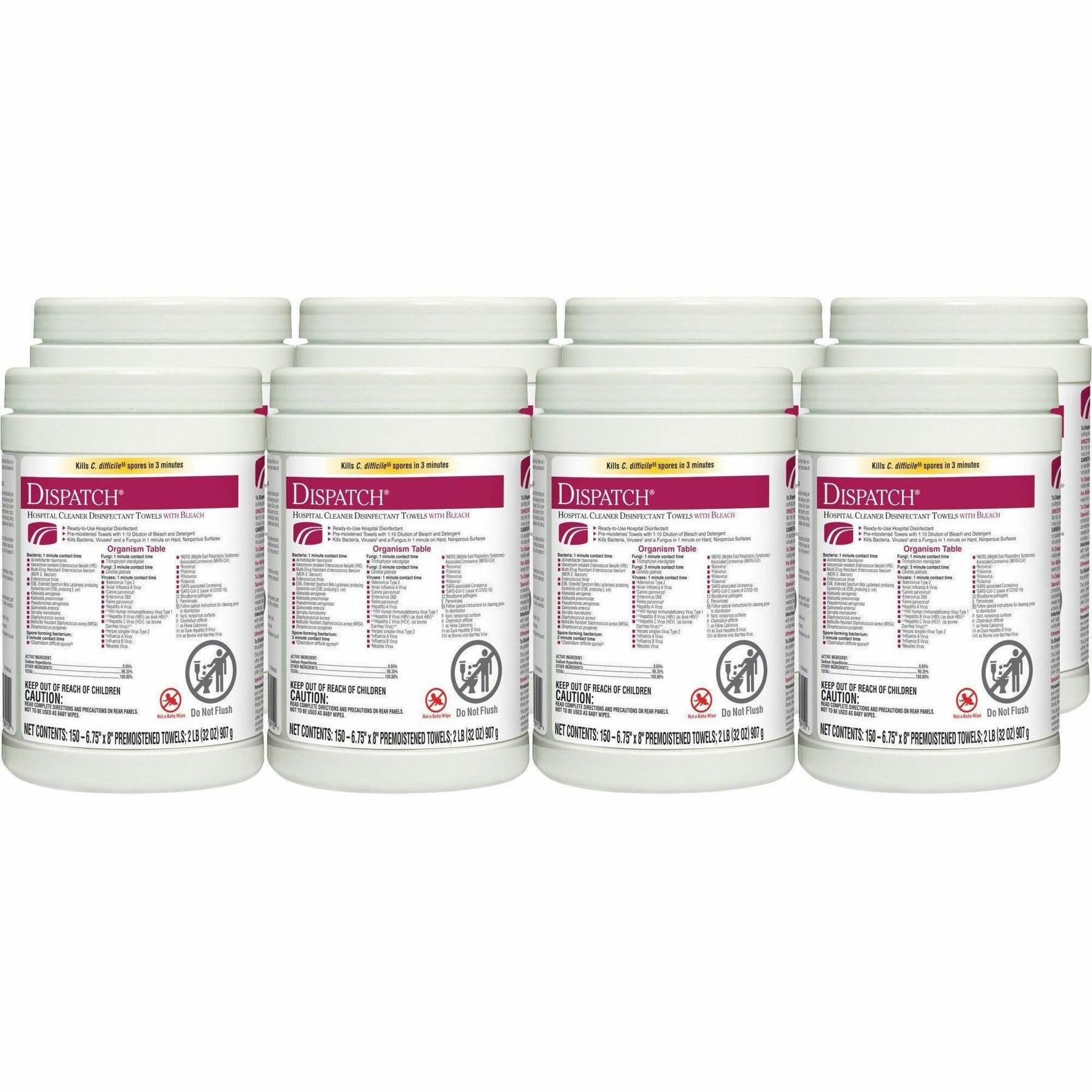 Dispatch Hospital Cleaner Disinfectant Towels with bleach are intermediate-level, hospital disinfectant wipes that meet CDC, CMS and OSHA guidelines for cleaning and disinfecting surfaces in healthcare facilities. Ready-to-use, one-step wipes contain