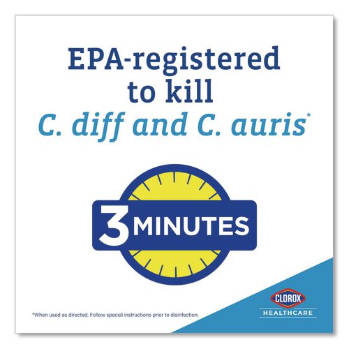 Your proven bleach solution for cleaning. Clorox Healthcare ® Bleach Germicidal Wipes kill C. difficile and C. auris in three minutes and 58 other microorganisms in one minute or less, including outbreak causing viruses, emerging viral pathogens, MRS
