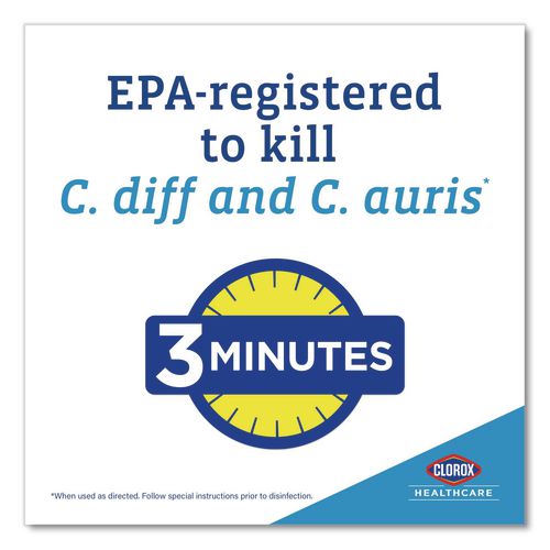 Your proven bleach solution for cleaning. Clorox Healthcare ® Bleach Germicidal Wipes kill C. difficile and C. auris in three minutes and 58 other microorganisms in one minute or less, including outbreak causing viruses, emerging viral pathogens, MRS