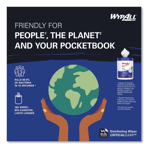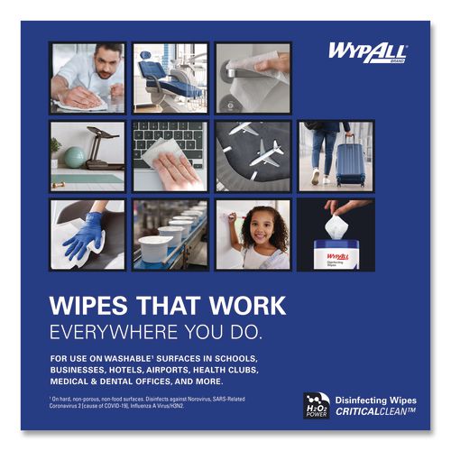WypAll ® Disinfecting Wipes offer a Clean You Can Trust with chemicals you can pronounce “ at a price you can afford. Activated with biodegradable hydrogen peroxide, the clean, fresh-scented WypAll ® formula packs a punch by killing pathogens such