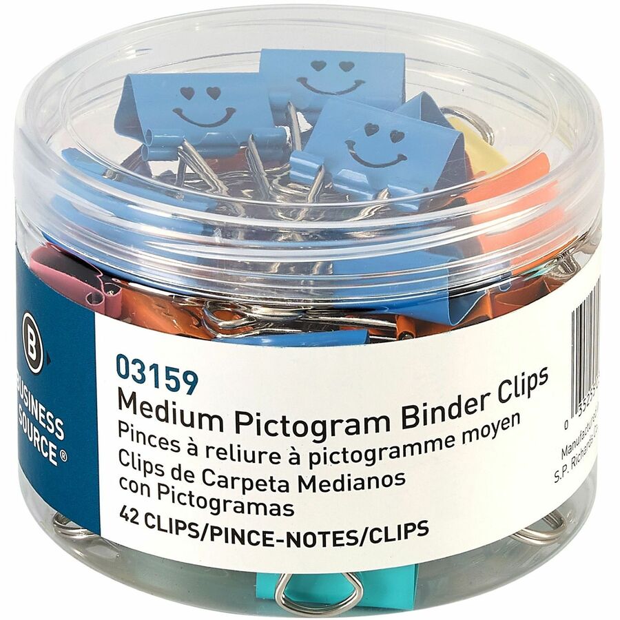 Business Source Binder Clip, Emoji, Medium, 2-1/2"x3-9/10"x2-1/2", 42/TB,AST, TB (1 Tube)