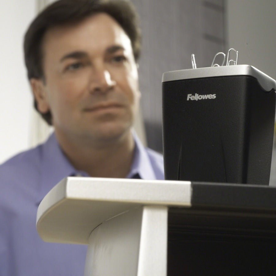 Stylish and contemporary square-shaped holder keeps clips at your fingertips. Magnetic top makes paper clips easy to dispense. Nonskid rubber feet. Removable lid. Holds 150 clips. Plastic. Desktop Supplies Organizer Type: Paper Clip Holder; Number of