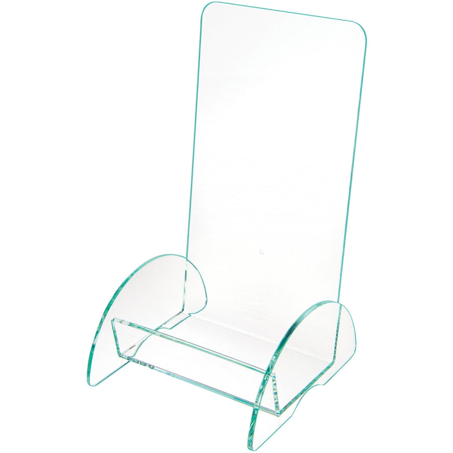 Sleek, euro-style literature holder features green-tinted edges that create the look of a high-end glass display unit. Use where image and value are equally important. More durable and lighter weight than glass, its transparent, acrylic construction