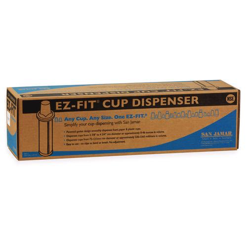 Unique, highly practical dispenser accommodates nearly any size cup from 8 oz to 46 oz. Cup-size-specific EZ-Fit gaskets ensure smooth dispensing regardless of cup size. Controlled, one-at-a-time dispensing helps minimize waste. Dispenser may be moun