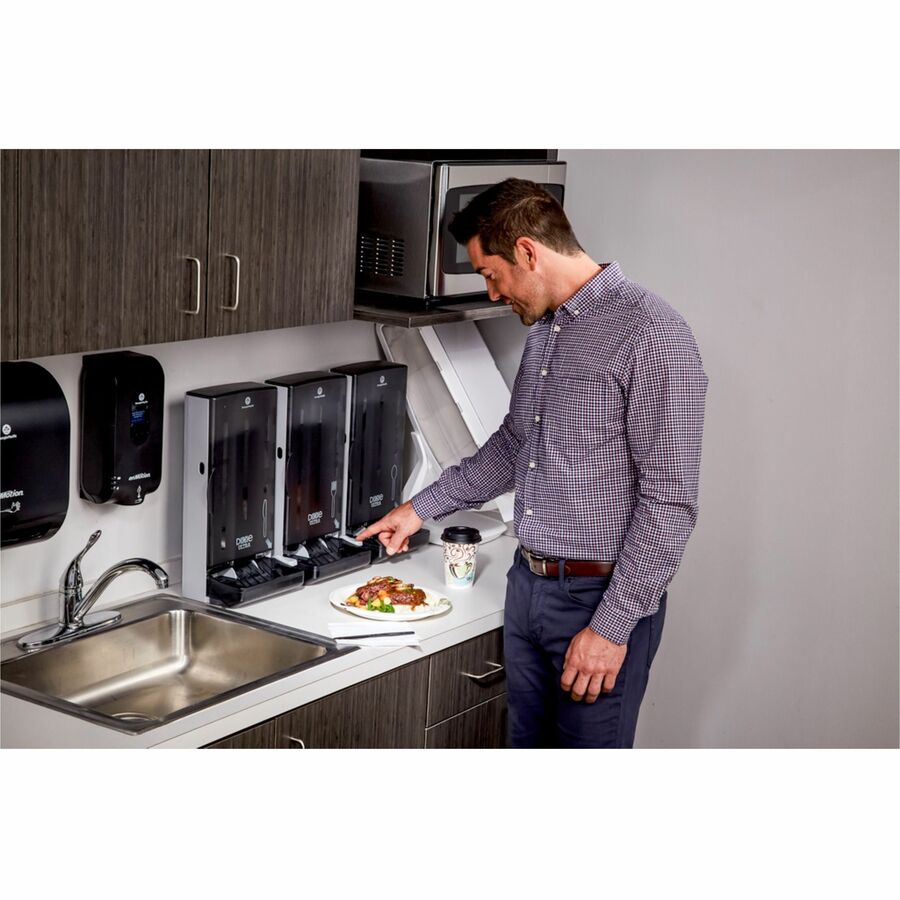Utensil refill is designed for use in Dixie SmartStock Mini Cutlery Dispenser. Pre-counted, pre-assembled refill makes it fast and easy to restock an empty dispenser. Simply pick up a new cutlery refill, slide it into the dispenser, rip and pull away the binding tape, and close the door. Utensils are made of plastic polystyrene. The SmartStock dispenser, owned by Dixie Consumer Products LLC (Dixie), is not available for sale, but must be subleased to end-user customers via authorized distributors of this product. Any fee charged to an end-user customer is a one-time sublease fee. Only Dixie SmartStock cutlery can be used in the SmartStock dispensers. End users will receive a sublease registration form to be completed electronically. The sublease form will also register the SmartStock dispenser for the Dixie lifetime satisfaction program. For dispensers, please contact your sales representative.
