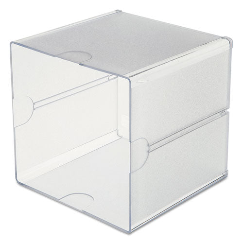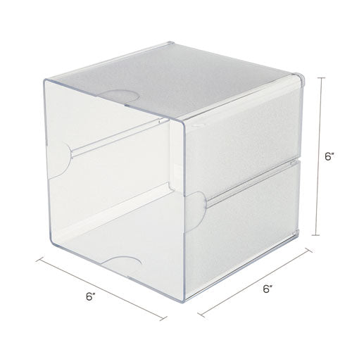 Transparent, stackable cube organizer keeps your workspace clutter-free and supplies close at hand. Ideal for storing small supplies. Drawers are clear so you can easily see what's inside, and removable so you can get what you need quickly. Modular o