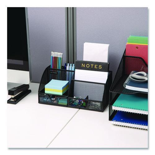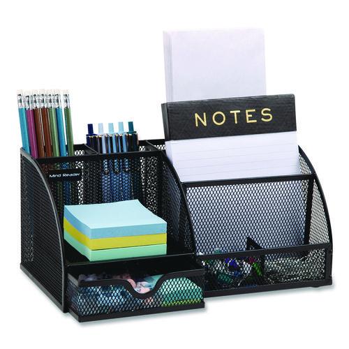 Image of Mind Reader 7-Compartment Metal Desk Organizer, 11 x 5.5 x 5, Black Metal Mesh