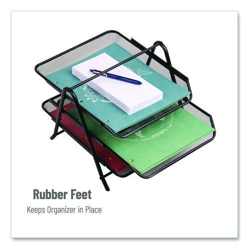 Multi-tiered design provides ample storage capacity for storing and organizing a variety of items such as files, mail, documents, folders, bills and letters. Declutter your desk or counter and keep everything within easy reach. The attached rubber fe
