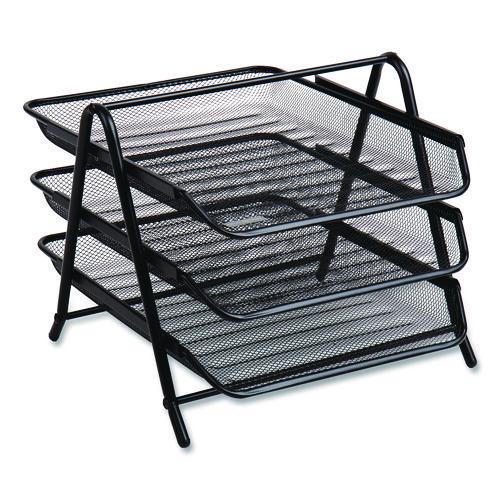 Image of Mind Reader Tiered Metal Mesh Desk Tray Organizer, 3-Tier, Letter Size, 11.5 x 13.75 x 10, Black