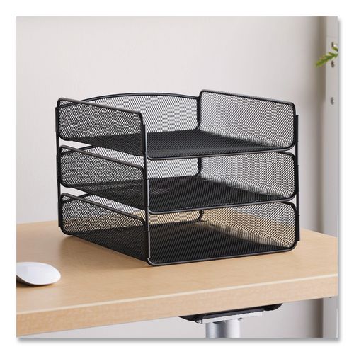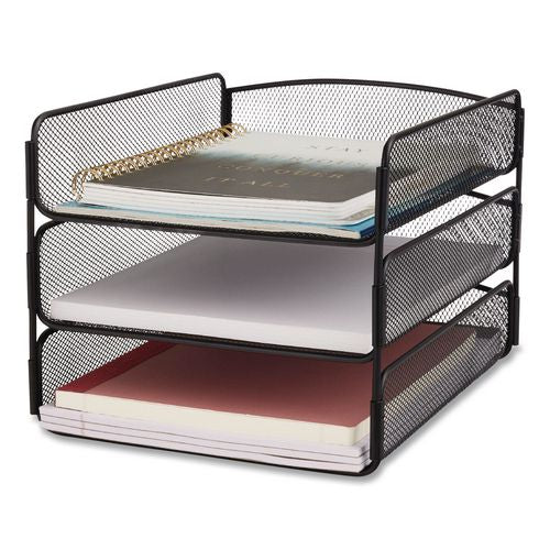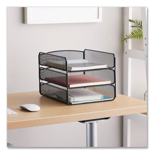 Onyx Mesh Desktop Organizer helps turn a messy desktop into an organized, productive workspace. Manufactured with a stronger, thicker, commercial-grade steel with a powder coat finish, it's designed to stand up to years of heavy, repetitive use. Idea