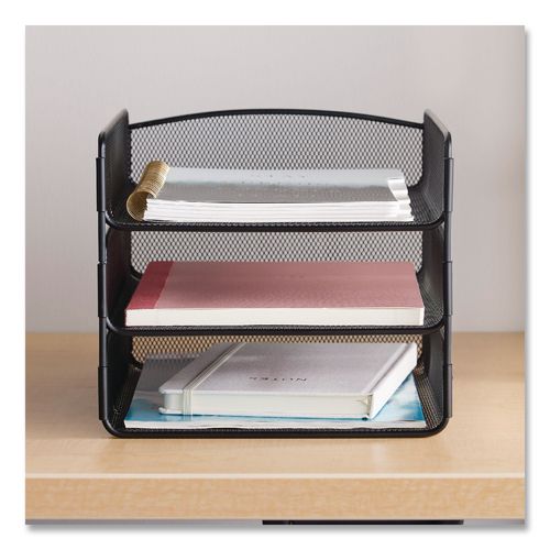 Safco® Onyx Desk Tray, 3 Sections, Letter Size Files, 9.25" X 11.75" X 8", Black